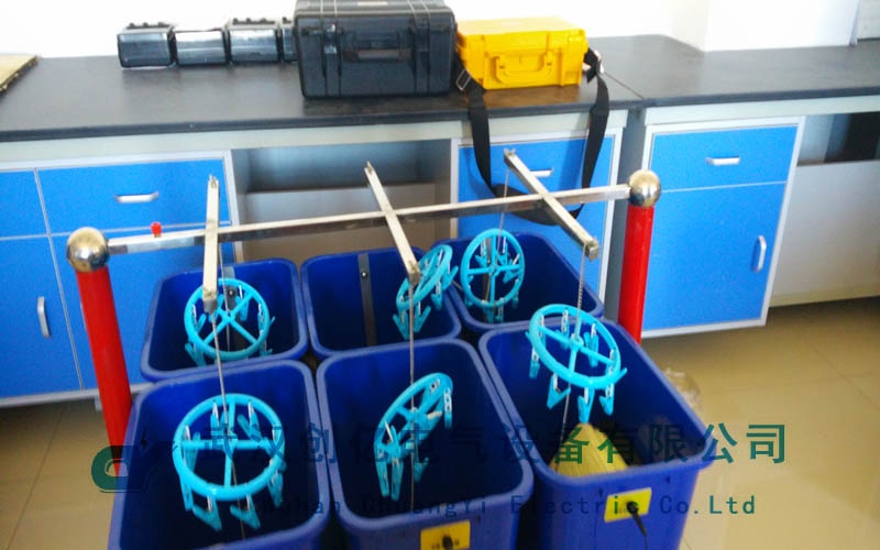 我司技術(shù)人員一到客戶公司,首先是清點(diǎn)相關(guān)設(shè)備,為之后的試驗(yàn)做準(zhǔn)備,并根據(jù)客戶的實(shí)際需要制定了相應(yīng)的培訓(xùn)計(jì)劃。首先培訓(xùn)的是CYYZ-301避雷器帶電測(cè)試儀,測(cè)試現(xiàn)場(chǎng)選在220KV明寧線線路處,首先強(qiáng)調(diào)在接線時(shí)的注意事項(xiàng),最先要做的就是接地線,能有效的保障操作人員的生命安全。然后連接其他測(cè)試線,進(jìn)行測(cè)試。因?yàn)樵跍y(cè)試過(guò)程中發(fā)現(xiàn)邊相干擾的情況,因此打開(kāi)邊相補(bǔ)償功能,再進(jìn)行測(cè)試一切正常。然后依次進(jìn)行了CYYB-S3便攜式三相電能表檢驗(yàn)裝置、CYYJ-3F交直流指示儀表檢定裝置等設(shè)備的培訓(xùn)。